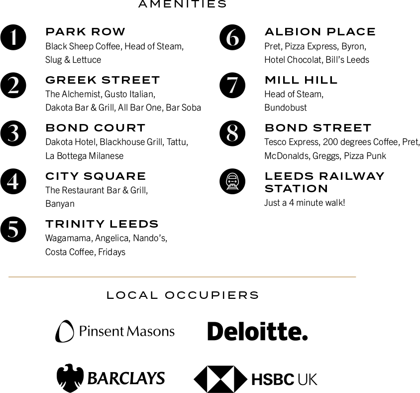 Within walking distance of Leeds Railway Station and short drive to the national motorway network via the J2 M62. Experience the benefits of a truly nationally and internationally connected city.